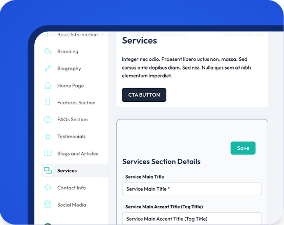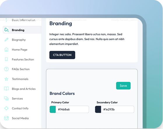 Our templates come with a powerful branding section that lets healthcare professionals fully customize their websites. Add your brand colors, logo, personal details and create a digital space that truly reflects your identity.